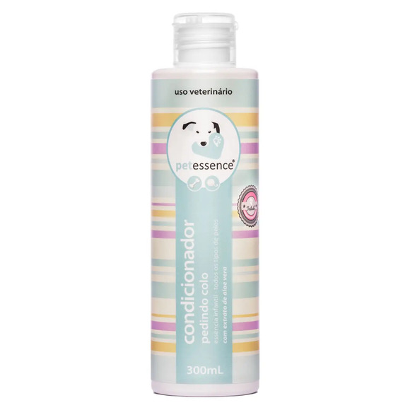 A Linha Básica, caracterizada pelos nomes que representam elementos da relação entre o tutor e seu pet, é composta por quatro kits de shampoos, condicionadores e perfumes de mesma essência, mais quatro diferentes perfumes para serem usados com quaisquer outros produtos PetEssence®. O CONDICIONADOR Pedindo Colo é para ser usado depois do shampoo Pedindo Colo, proporciona maciez aos fios e facilita a escovação. Sua fórmula suave, com delicada essência infantil, pode ser usada com frequência, deixando o pelo de cães e gatos com brilho renovado. Modo de usar: Após usar o shampoo Pedindo Colo, aplique o condicionador em toda pelagem, massageando suavemente. Deixe agir por alguns minutos  enxague bem. Composição: Álcool cetoestearílico, Água deionizada, Óleo mineral, Propilparabeno, Metilparabeno, Fragrância, Propilenoglicol, Quaternário de amônio, Lanolina etoxilada, BHT, Extrato de Aloe Vera. A PetEssence pensa e preza pela essência do Pet, são produtos testados dermato/oftalmológicamente,não agride os Pets. Os teste são realizados em humanos.