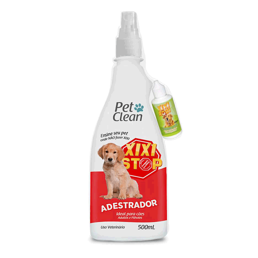 Kit Xixi Stop e Xixi Aqui Pet CleanO Kit Xixi Stop e Xixi Aqui Pet Clean é um perfeito adestrador caseiro. Cada um com sua funcionalidade educando o seu pet a fazer as necessidades nos lugares certos.Os cães têm o seu comportamento natural de marcar o seu território por todo o lugar, seja nos pés da mesa, cadeira, parede, tapetes ou qualquer lugar que esteja em seu campo de visão.Além do preço especial, o Kit Xixi Stop e Xixi Aqui Pet Clean vai te auxiliar da melhor maneira a adestrar o seu pet, confira!ComposiçãoXixi Aqui: ureia e carbonato de amônio.Xixi Stop: Metil Nonil Cetona, Essência, Veículo Q.S.P.Como usar o xixi stop e xixi aqui Pet Clean?Xixi Stop/Não pode: ele é indicado para ensinar onde os cães não devem fazer suas necessidades.Pulverize o educador xixi stop uma ou duas vezes ao dia, no local onde não se deseja que o seu animal faça as suas necessidades;Se necessário, limpe o local ou objeto, utilizando um pano seco, não devendo remover o produto enquanto sua ação for efetiva;É importante não mascarar o odor com outros produtos ou alimentos.Xixi Aqui: ele é indicado para mostrar ao pet onde é o lugar correto para fazer suas necessidades.Pingue 5 gotas do produto diariamente em uma folha de jornal, em um tapete higiênico ou num pano que tenha enxugado a urina e coloque em um lugar de sua preferência.
